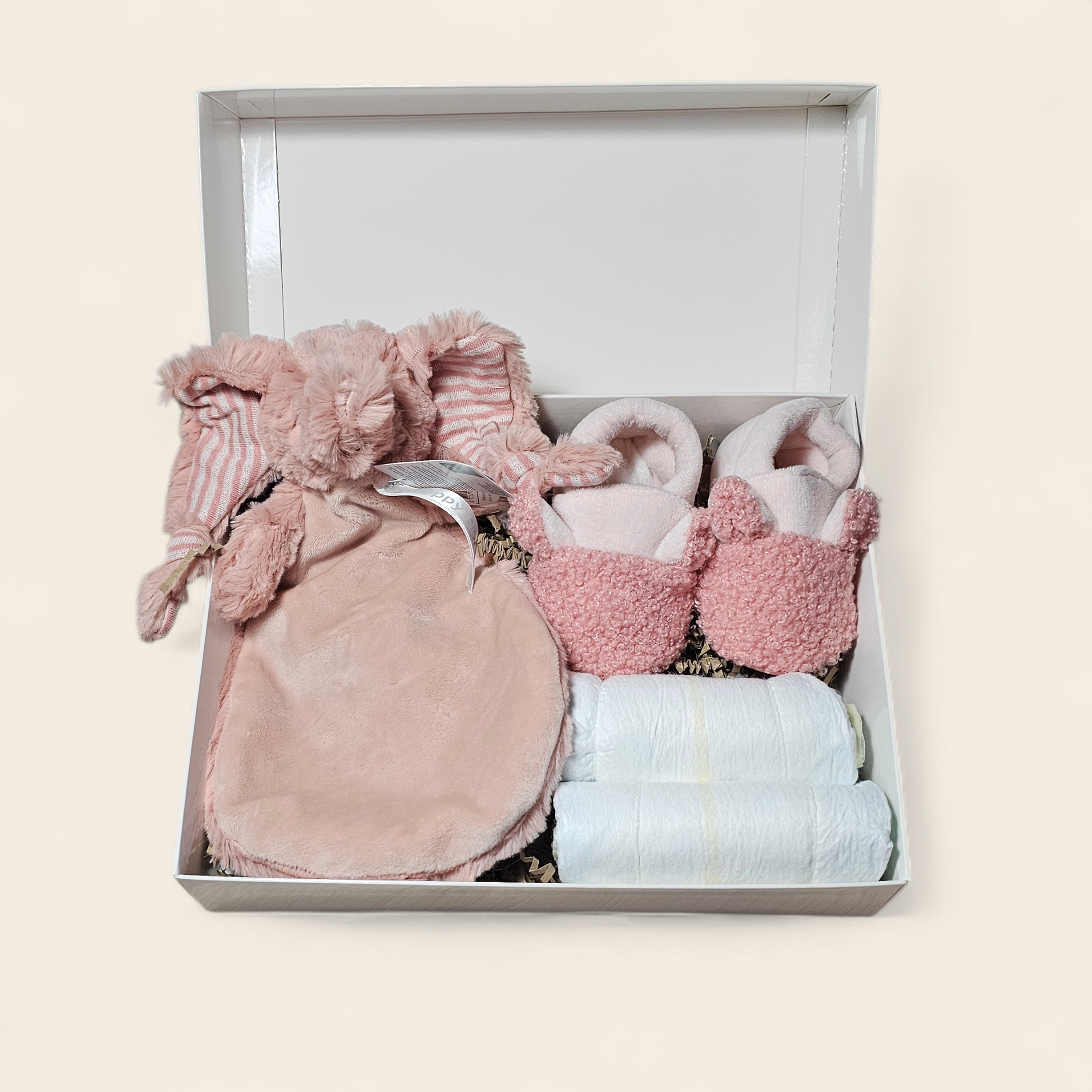Kraamcadeau met Happy Horse Elephant Emily – Personalisatie Mogelijk, Luiers & Apollo Babyslofjes