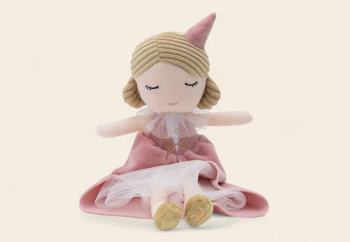 Princess Lady Lynn is een lieve en zachte prinsessen knuffel die jouw kleintje gezelschap houdt, zowel overdag als tijdens de nacht. Terwijl je baby slaapt, waakt zij rustig en zorgt zij voor een vertrouwd en veilig gevoel. Overdag biedt Princess Lady Lynn vermaak, troost en gezelligheid, waardoor zij al snel een onmisbaar knuffelvriendje wordt.