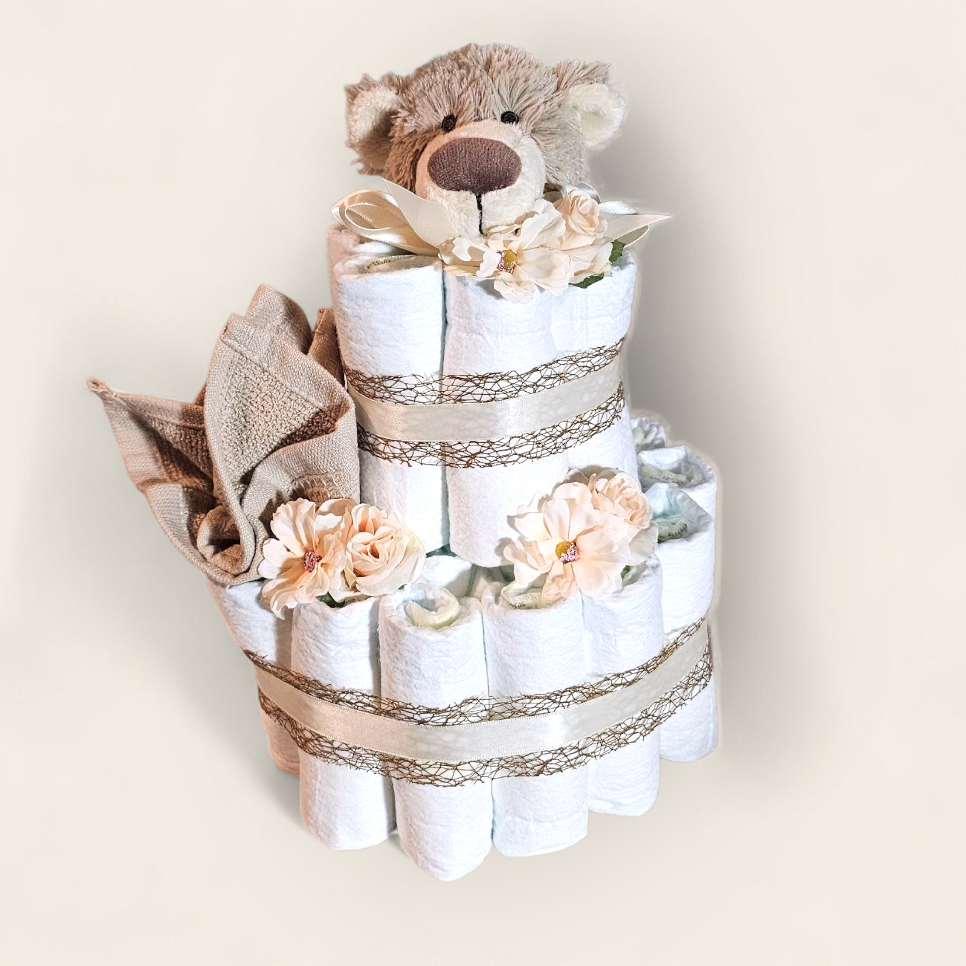 Verras met dit stijlvol en praktisch kraamcadeau dat perfect past bij elke babykamer: onze luiertaart in bruine en neutrale tinten. Deze heerlijke taart is met zorg samengesteld en bevat alles wat je nodig hebt voor de eerste weken. De perfecte combinatie van mooi én nuttig!