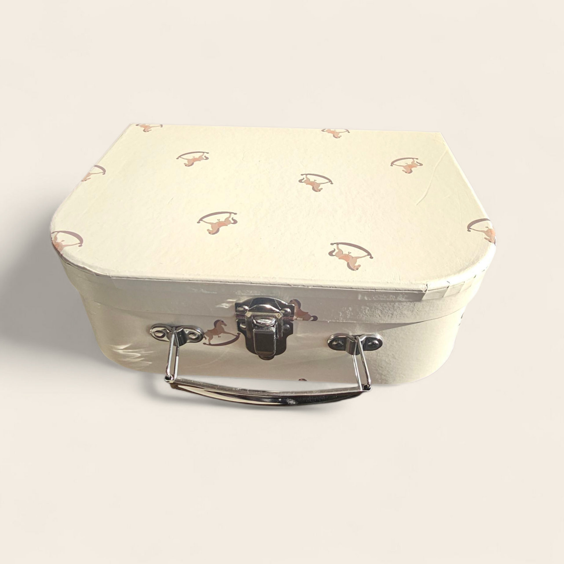 Dit luxe kraamcadeau in het thema Nostalgic Ride van Jollein is een perfect geschenk voor kersverse ouders. De zachte kleuren en het klassieke hobbelpaardmotief geven het geheel een nostalgische uitstraling. Het cadeau wordt gepresenteerd in een ruim koffertje van 25 x 17 cm, dat later leuk kan worden gebruikt als bewaarplek voor de eerste spulletjes van de baby.