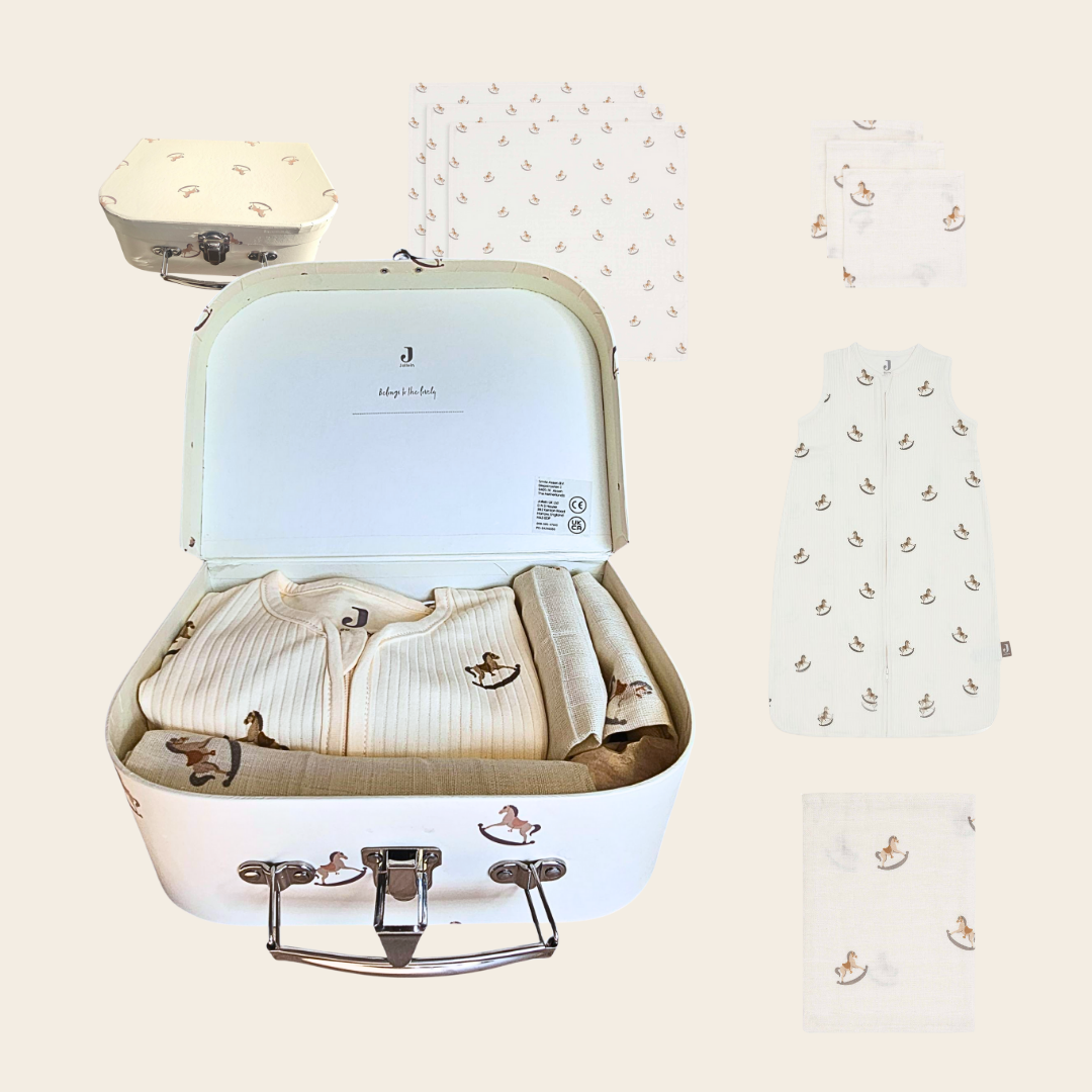 Kraamcadeau Nostalgic Ride – groot koffertje met Jollein slaapzak en babyartikelen